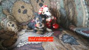 Lilah and Chester's female Yorkie puppy is five weeks old. She is non-shedding and known to be hypo-allergenic. She is moving around now on a mat in a plastic swimming pool in my kitchen and
