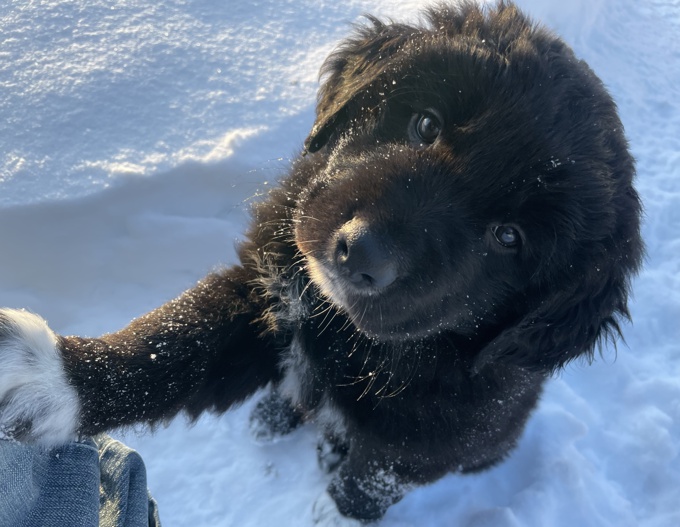 We have two male puppies available which were born November 10, 2025. The mum is a Lab x St. Bernard and the dad is a Great Pyrenees x Akbash. They are good with cats. Healthy and happy.